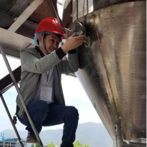 △图为现场工人安装法兰液位计△图为单法兰液位计在工业现场的实拍