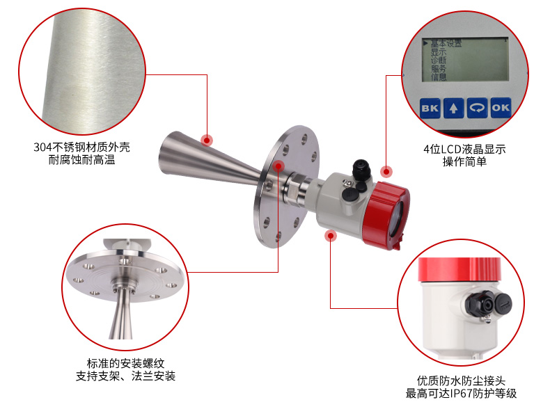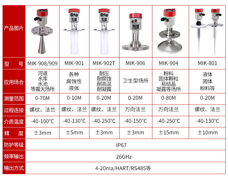 MIK-RD908/909雷达液位计天线发射极窄的微波脉冲,这个脉冲以光速在空间传播,遇到被测介质表面,其部分能量被反射回来,被同一天线接收。发射脉冲与接收脉冲的时间间隔与天线到被测介质表面的距离成正比。由于电磁波的传播速度极高,发射脉冲与接收脉冲的时间间隔很小(纳秒量级)很难确认,MIK系列908雷达液位计采用一种特殊的解调技术,可以准确识别发射脉冲与接收脉冲的时间间隔,从而进一步计算出天线到被测介质表面的距离。