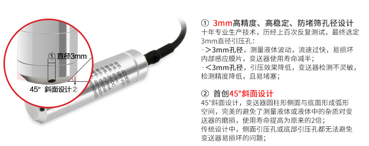 MIK-P260型硅压阻式液位压力变送器将充油芯体封装在不锈钢壳体内,前端防护帽起保护传感器膜片的作用,也能使液体流畅地接触到膜片,防水导线与外壳密封连接,通气管在电缆内与外界相连,内部结构防结露设计。MIK-P260 型内置微型信号处理电路,可进行远程传输。具有良好的稳定性和可靠性。 MIK-P260型硅压阻式液位压力变送器广泛应用于环保、水利、变频供水、工业过程控制、化工等领域的液位测量控制。