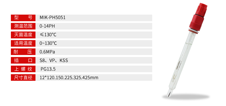MIK-PH5050高温灭菌玻璃电极集精度高、易用于一体,采用耐高温型凝胶和耐高温型固体电介质双液接传感器,维护量低,可与进口电极互换,适合要求严格的在线pH测量,响应快,稳定性好。广泛应用于医药、颜料、涂料、纸浆造纸、中间体、化肥、淀粉、污水处理、环保、电镀废水处理等行业。