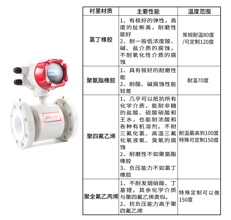 产品描述 Product Description 红外触摸式电磁流量计是根据法拉第电磁感应定律进行流量测试的流量计。电磁流量计的优点是压损极小,可测流量范围大。最大流量与