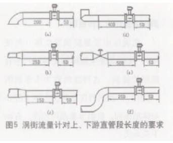 涡街流量计必须保证上、下游直管段有必要的长度(见图5)。
